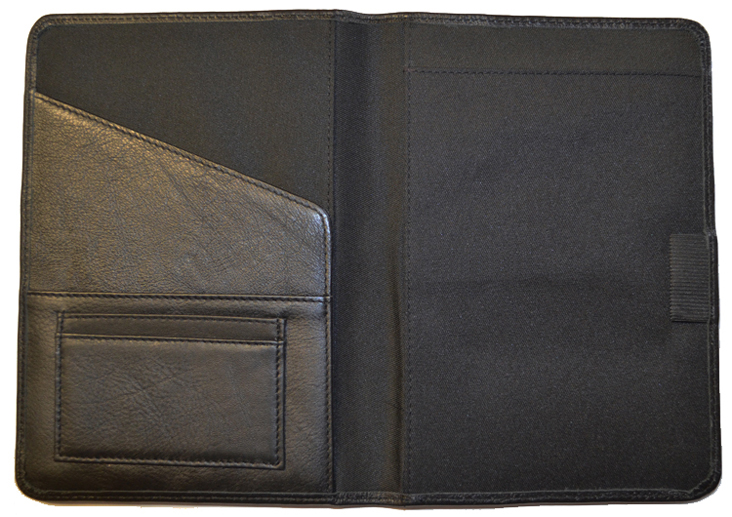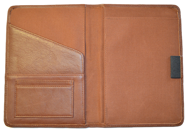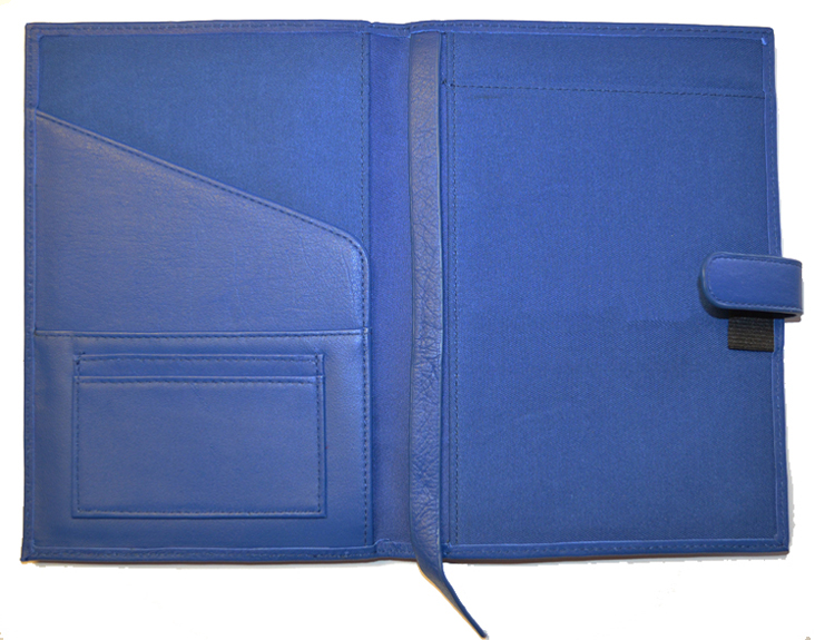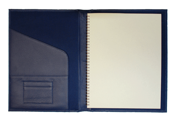 Features:- This item is completely hand stitched and turned edges, with a foam-padded genuine leather cover. Has many interior pockets, and a pen loop. Ten business-card-size pockets on the left side, plus a document flap. Holds an 8 1/2" x 11" notebook or letter-size pad, with both vertical and horizontal slots on the right side. A 160-page ruled spiral notebook is included. Refills Available.